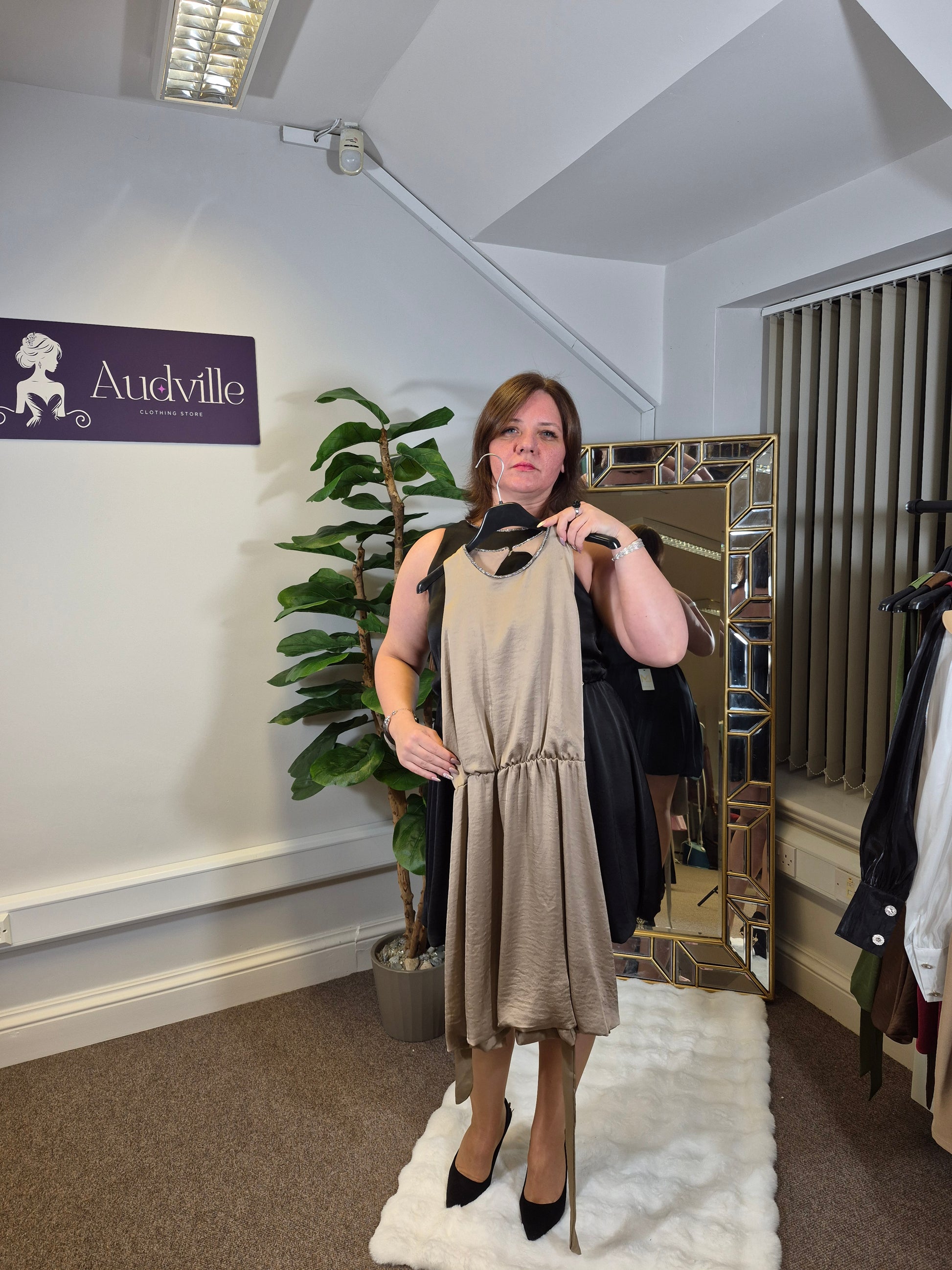 Measurements: Bust size 100 cm, Waist size 104 cm, Hips size 150 cm, Length 93cm.